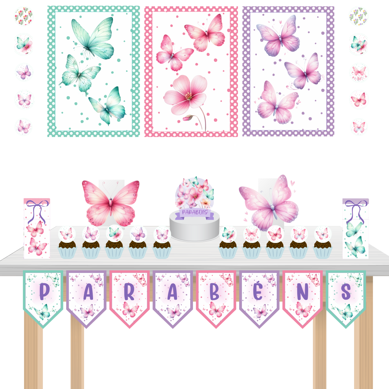 Kit festa fácil Kit Bolinho Básico Borboletas Mêsversário Aniversário
