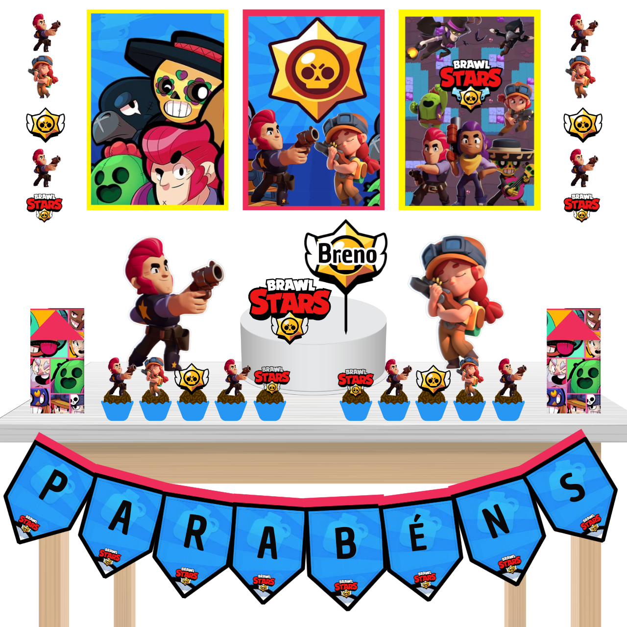 Kit festa fácil Kit Bolinho Básico Braw Stars Mêsversário Aniversário